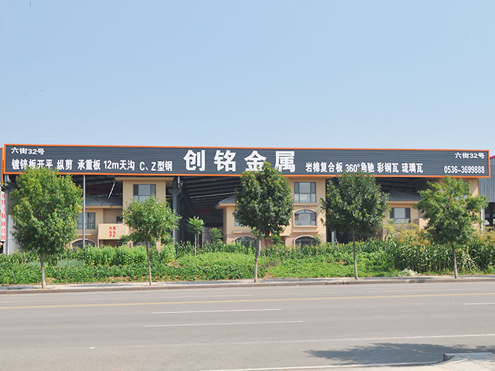 濰坊創(chuàng)銘金屬制品有限公司位于山東臨朐江北物流城,地理位置好。是本地區(qū)一家集鍍鋅板卷材、鍍鋅板開平、縱剪、樓層承重板、12米天溝、C、Z型鋼、彩鋼瓦、巖棉復合板、剪板折彎等產(chǎn)品及板材批發(fā)、零售、加工、配送的公司。